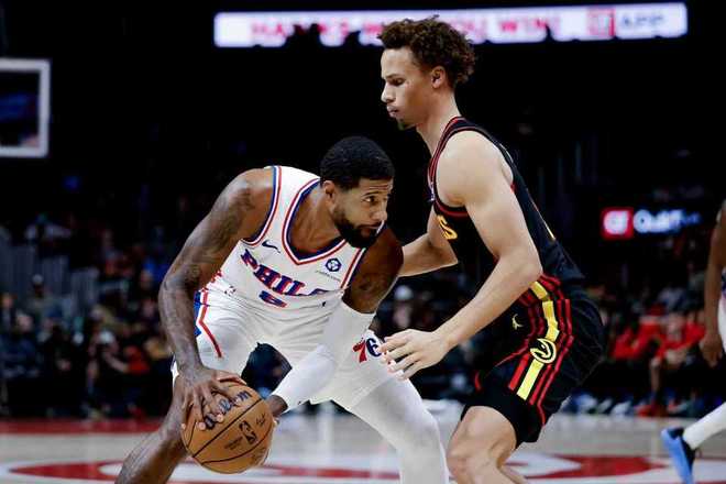 76人:乔治7记三分35分创造加盟76人生涯单场得分新高纪录,恩比德22分14篮板,巴洛11分,格莱姆斯14分7助攻,埃奇库姆26分。