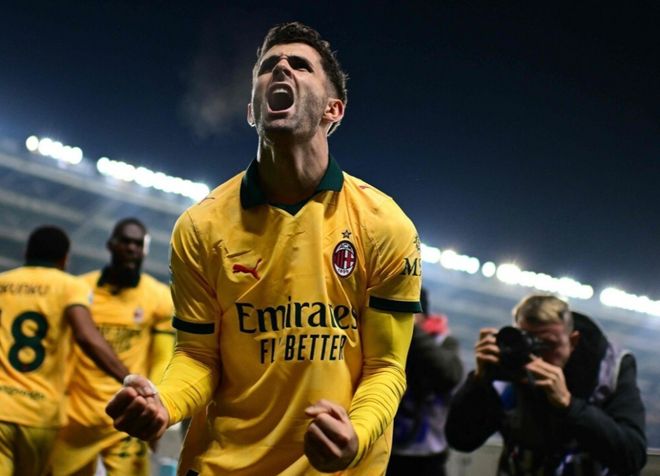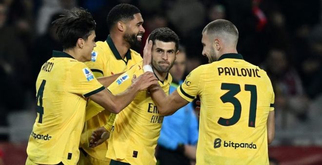 10分钟后,27岁的美国队长再次发威,他接到队友倒三角传中后,直接凌空抽射破门,帮助米兰连进3球,完成比分反超。
